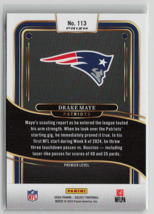 2025 Panini Select Prizm Drake Maye RC Premier Level Red Blue Flash #113
