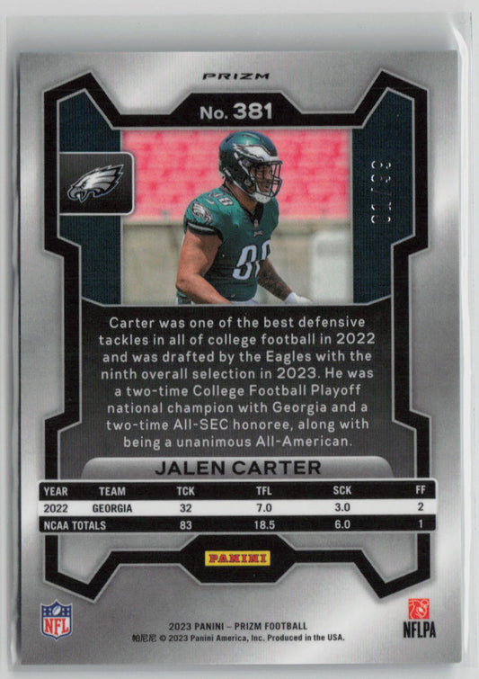 2023 Panini Prizm Football Jalen Carter Rookie Blue Ice 01/99 #381