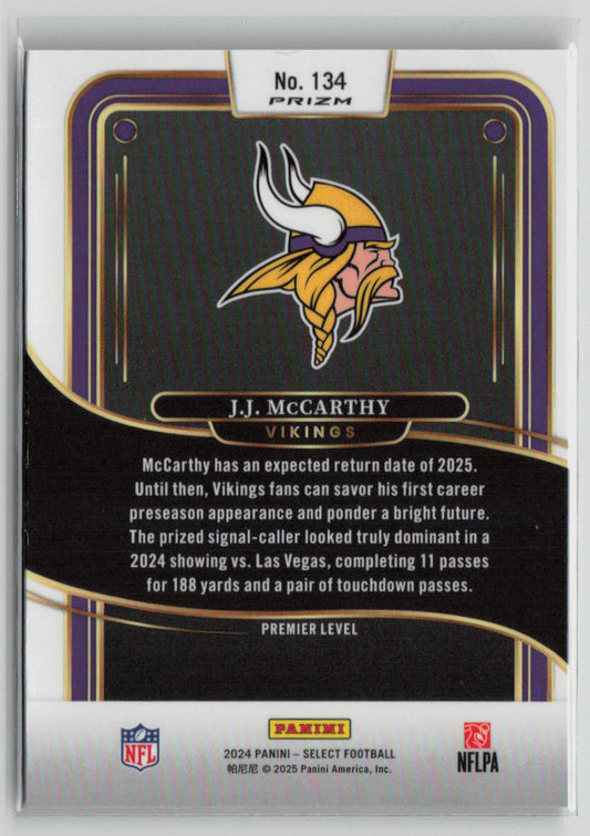 2025 Panini Select Prizm J.J. McCarthy RC Premier Level Green Yellow Flash #134
