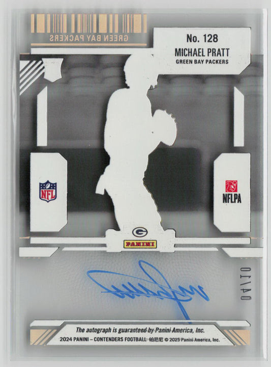 2025 Panini Contenders Rookie Ticket Michael Pratt Rookie Auto Clear 04/10 #128