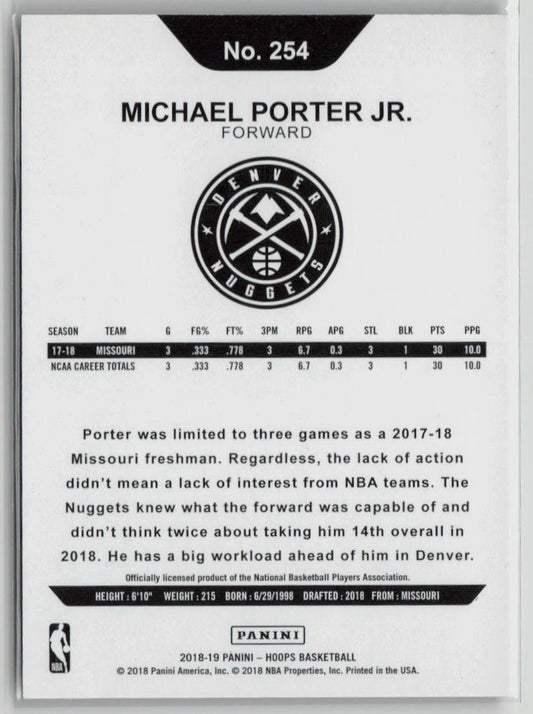 2018-19 Panini NBA Hoops Michael Porter Jr. Rookie Orange Explosive 06/25 #254