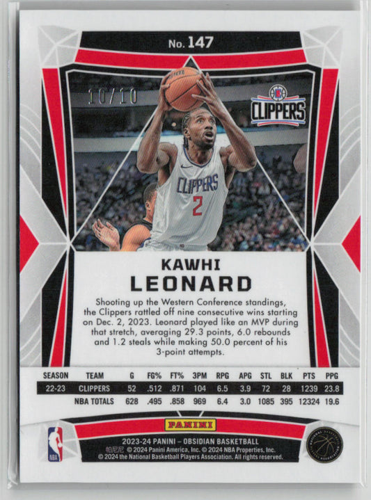 2023-24 Panini Obsidian Kawhi Leonard 10/10 Gold Flood #147