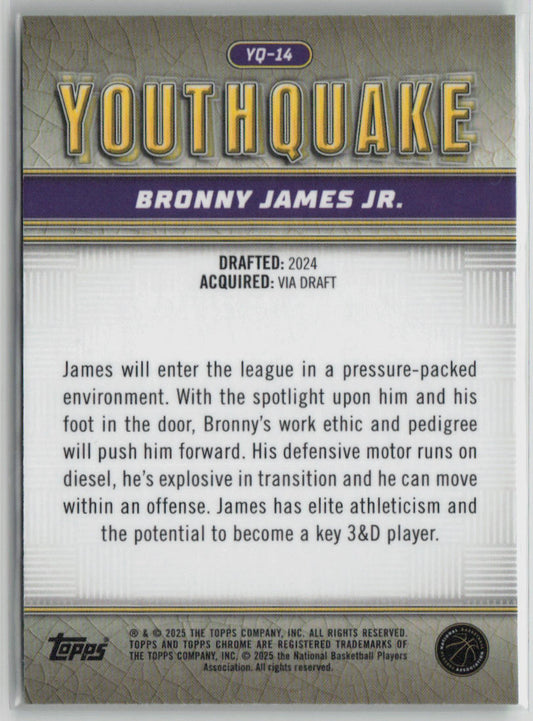 2025 Topps Chrome Youthquake Bronny James Jr. 82/99 RC Green #YQ-14