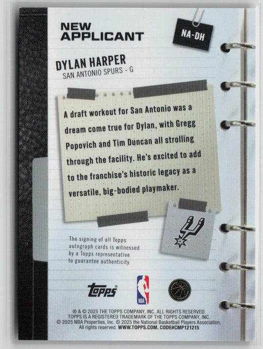 2025 Topps New Applicant Dylan Harper Rookie Auto Orange 11/25 #NA-DH