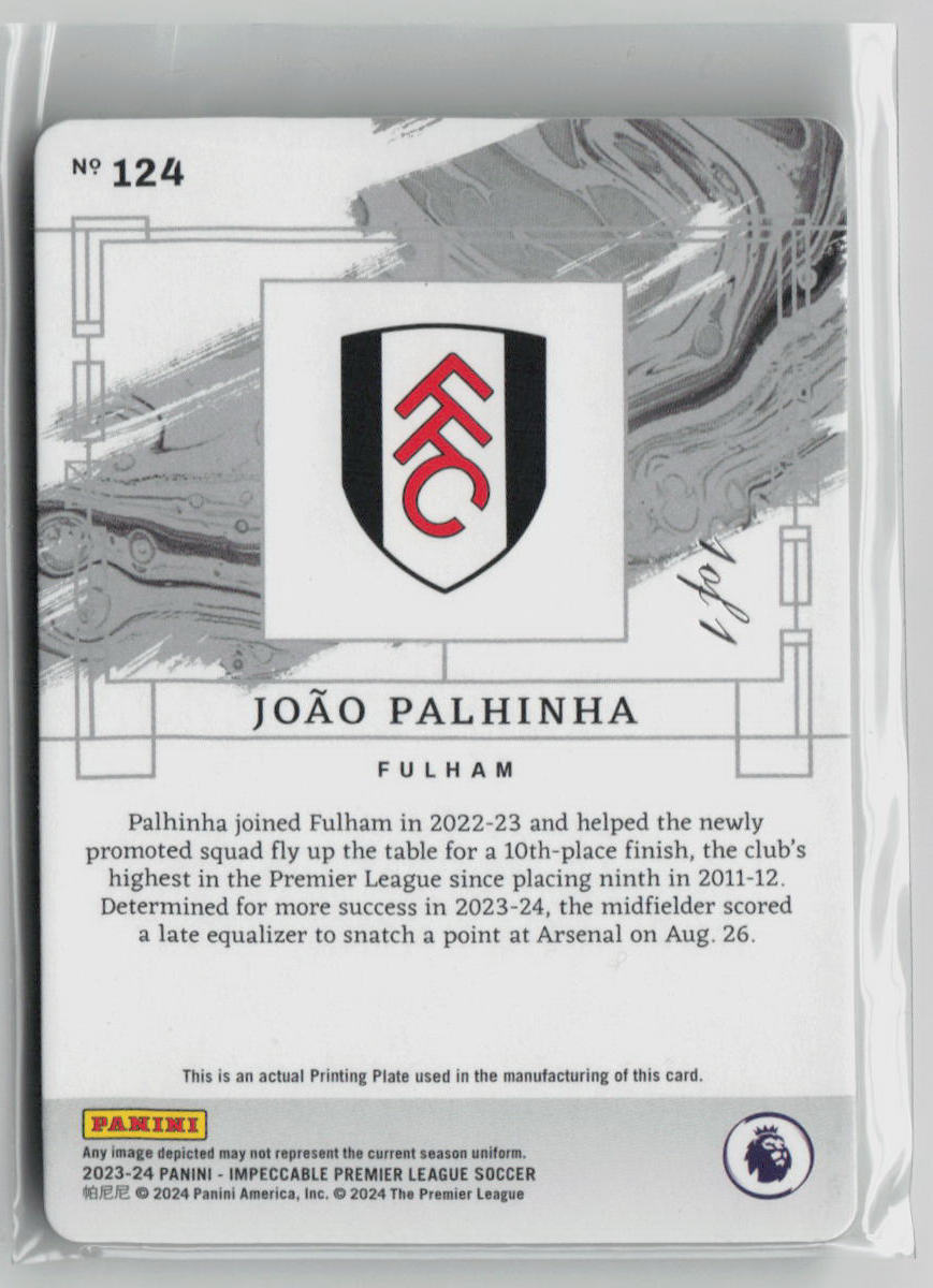 2023-24 Impeccable Premier League Soccer João Palhinha Printing Plate 1/1#124