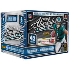 Experience the thrill of the game with 2024 Panini Absolute Football Mega Box! Each box contains 42 trading cards. Find 1 autograph or memorabilia card per box, on average. Look for the highly sought-after KABOOM and EXPLOSIVE inserts featuring the hottest NFL players. With exclusive retail-only autograph and memorabilia cards, this collection is a must-have for fans of the 2024 Rookie Class.