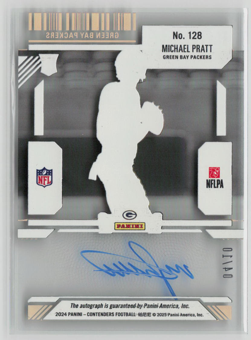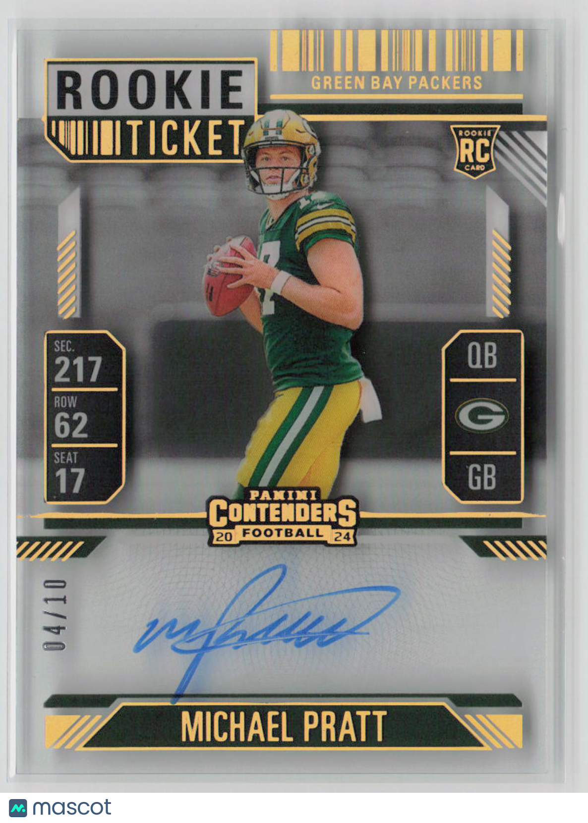 You are purchasing a 2025 Panini Contenders Rookie Ticket Michael Pratt RC 04/10 #128. You will receive the exact item in the photographs. Thank you for looking. Listed With Mascot.