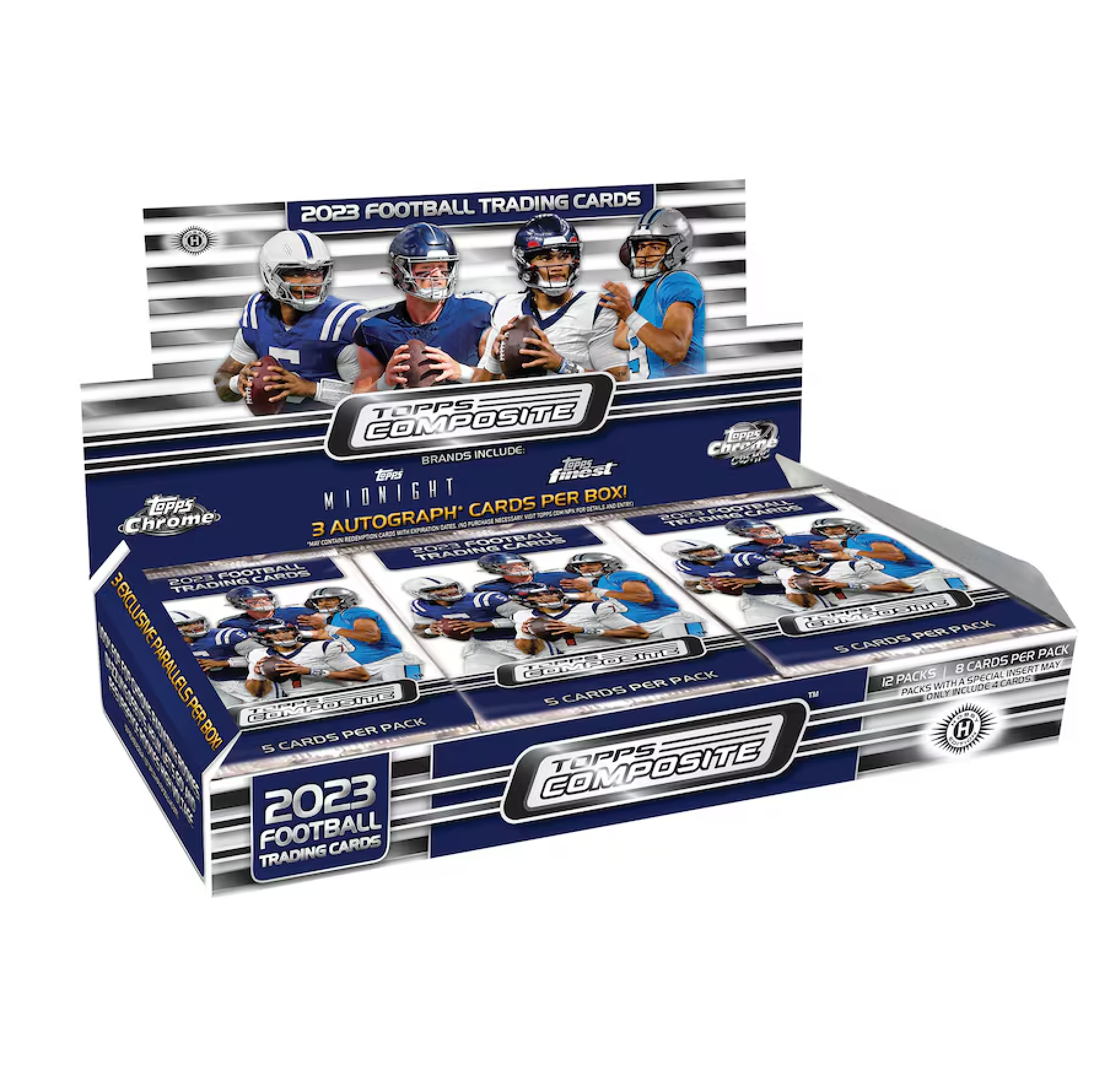 2023 Topps Composite Football is debuting with a lineup of electric products, inserts and beautiful parallels! Find cards from some of the most popular brands in the Topps catalogue. Look for Topps Chrome, Chrome Black, Resurgence, Finest, Cosmic Chrome, Midnight, Allen & Ginter, Archives, Heritage, and more! Find 3 Autographs in Every Box!