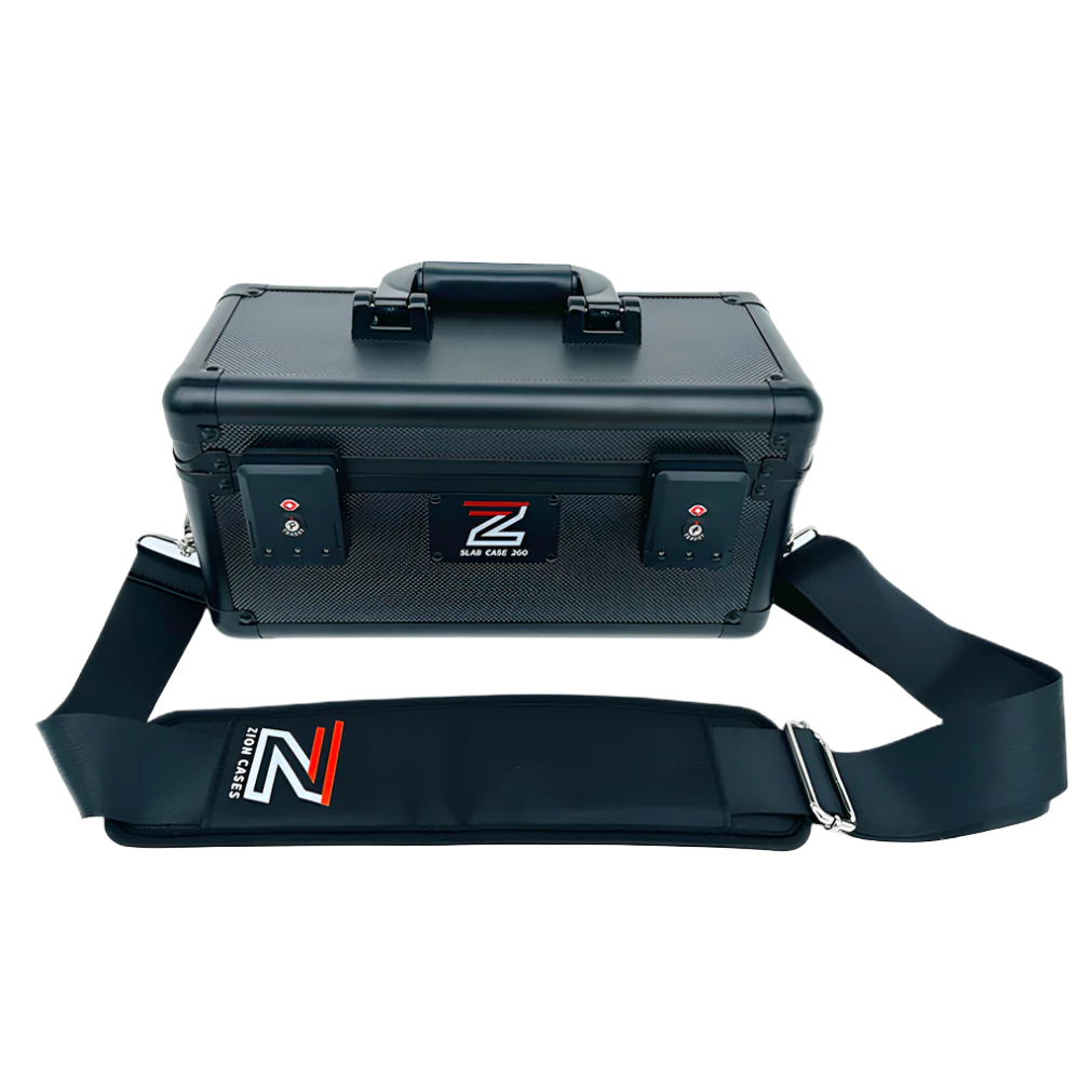 We have added a new redesigned version of the Slab Case 2GO with an option to add a shoulder strap for enhanced portability. (Available with or without the strap) Our new case design allows you to stack your cards upright in the case for easy organizing. Perfect for trade shows, trade nights, or on the go for daily use when transporting your cards.
